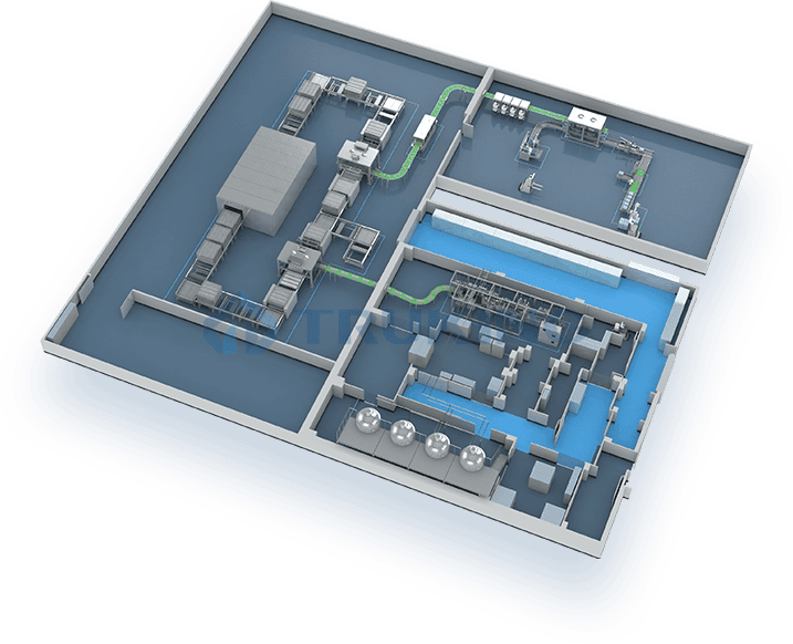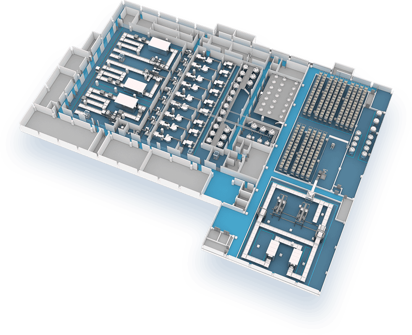 楚天科技智能口服液劑整體解決方案由數字化提取車間、自動化制劑車間、機器人包裝車間、原輔料立體倉庫與物流系統、信息化與數據中心5大核心功能模塊組成,以高效節能的工藝裝備系統與機器人產線為基礎,信息化系統為核心,自動化物流為紐帶,通過工業互聯網,實現中藥生產從前處理提取到產品包裝全工藝過程互聯互通與高效協同。構建了中藥生產大數據集成平臺,將工藝設備、控制系統、軟件系統的信息無縫整合為數字化藥廠模型,實現全廠從工藝設備、產線、車間的各類數據有效集成。滿足中藥生產運營的高效,高質量,安全,環保等要求。